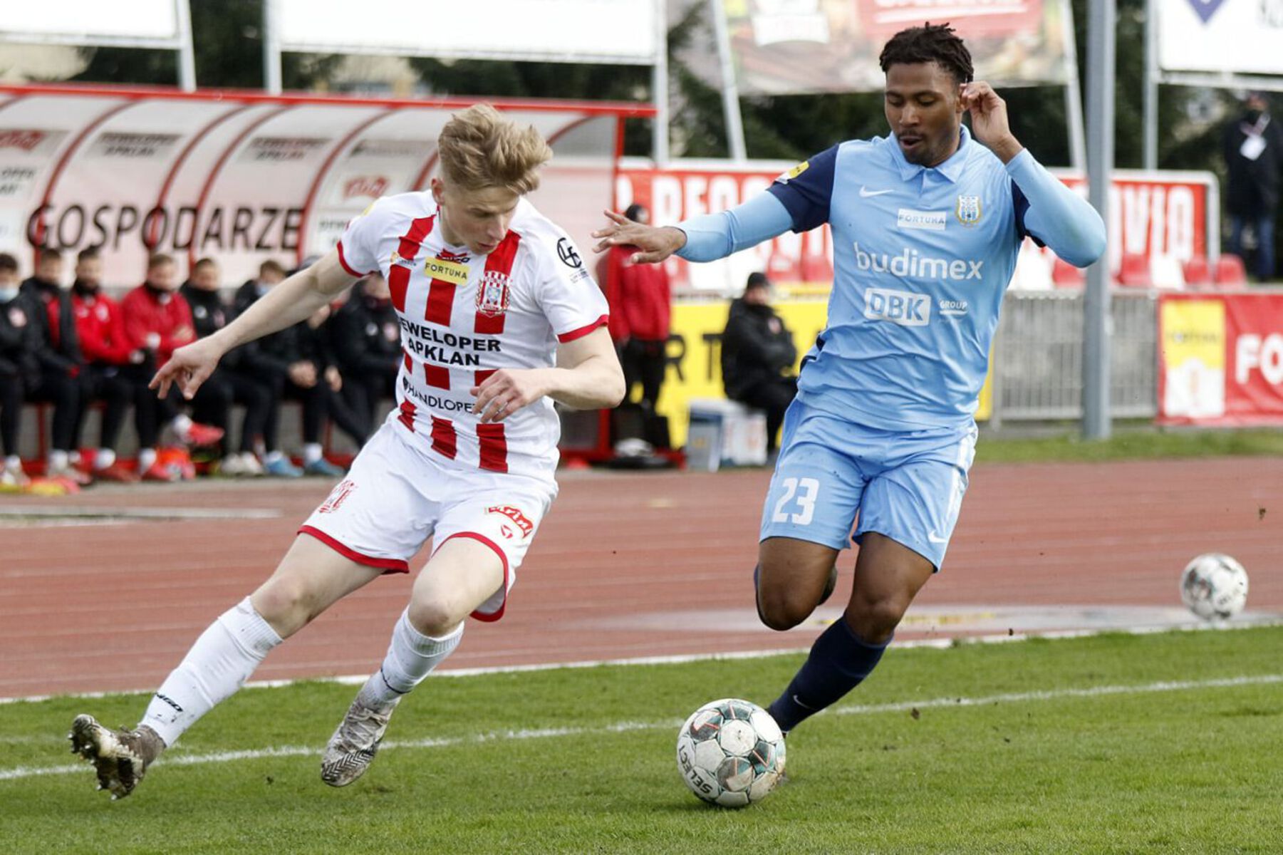Gospodarze atakowali coraz śmielej, a olsztynianie zaczęli popełniać błędy w defensywie. Gdy wydawało się, że jednak dowiozą korzystny remis do końca spotkania, Grzegorz Kuświk, który zastąpił Jakuba Mysiorskiego, źle przyjął piłkę po wznowieniu gry z autu i goniąc rywala sfaulował tuż przed polem karnym. Do piłki podszedł Bartosz Jaroch i bezpośrednio z rzutu wolnego pokonał Michała Leszczyńskiego.