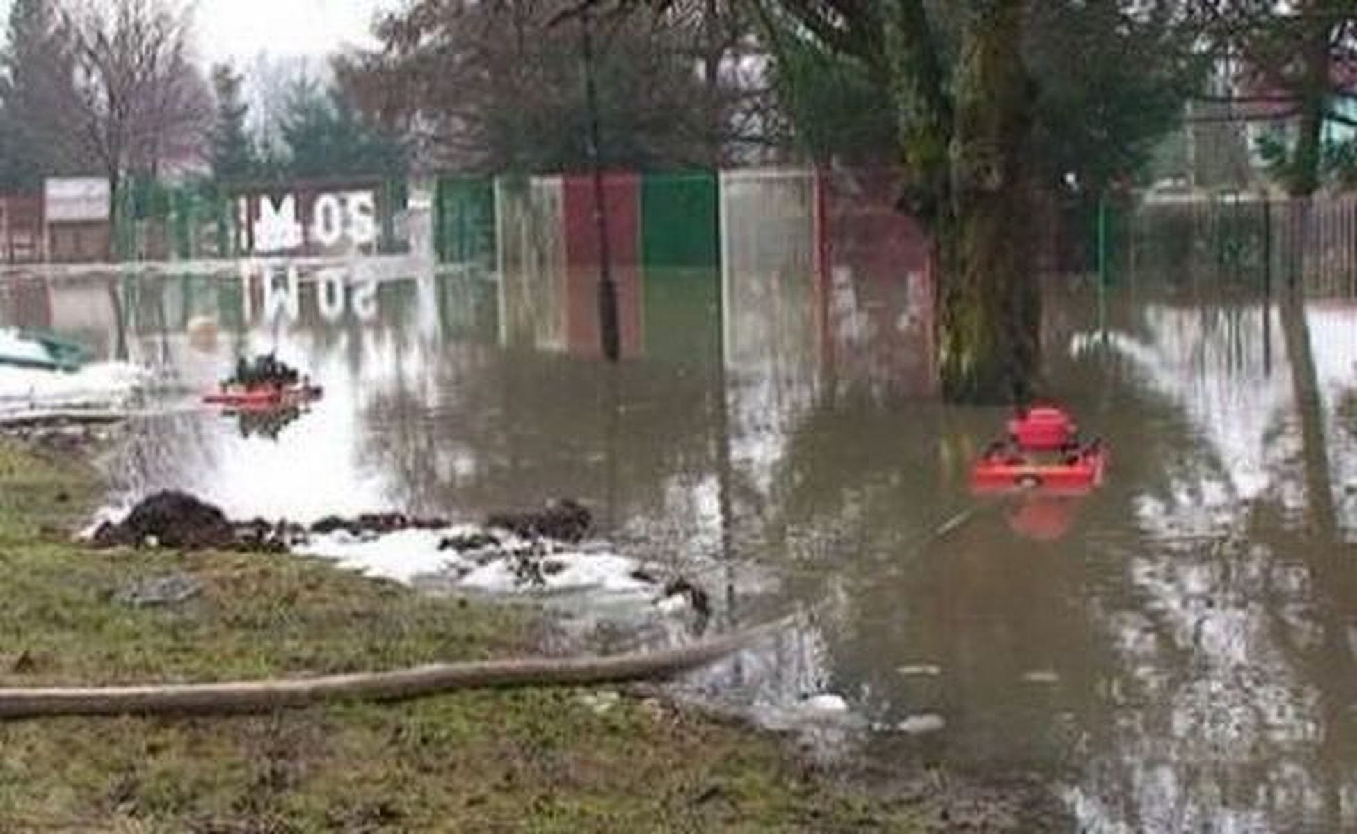 W walce z wodą pracownikom MOSiR-u pomagają strażacy i okoliczni mieszkańcy.