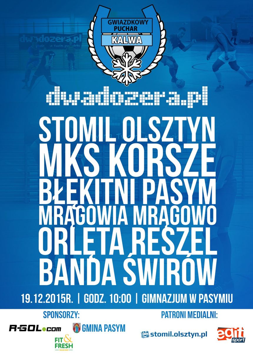 2015-12-18 13:21:33 Gwiazdkowy Puchar Kalwa, Stomil Olsztyn, Błękitni Pasym, MKS Korsze, Mrągowia Mrągowo, Orlęta Reszel, Olimpia Olsztynek, Banda Świrów, Dariusz Lipka, Cezary Łachmański, R-GOL.com, R-GOL